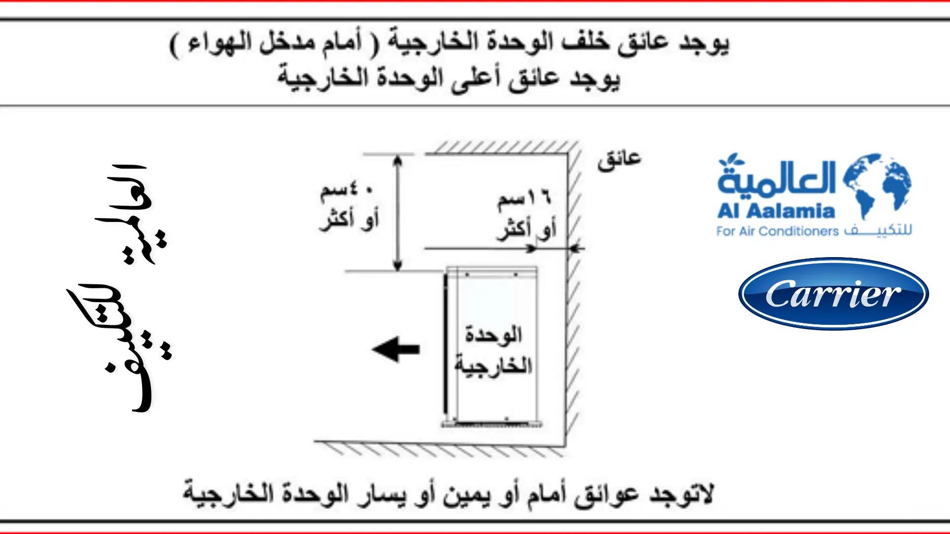 المواصفات الفنية لتركيب تكييف كاريير عند وجود عوائق خلفية وعلوية
